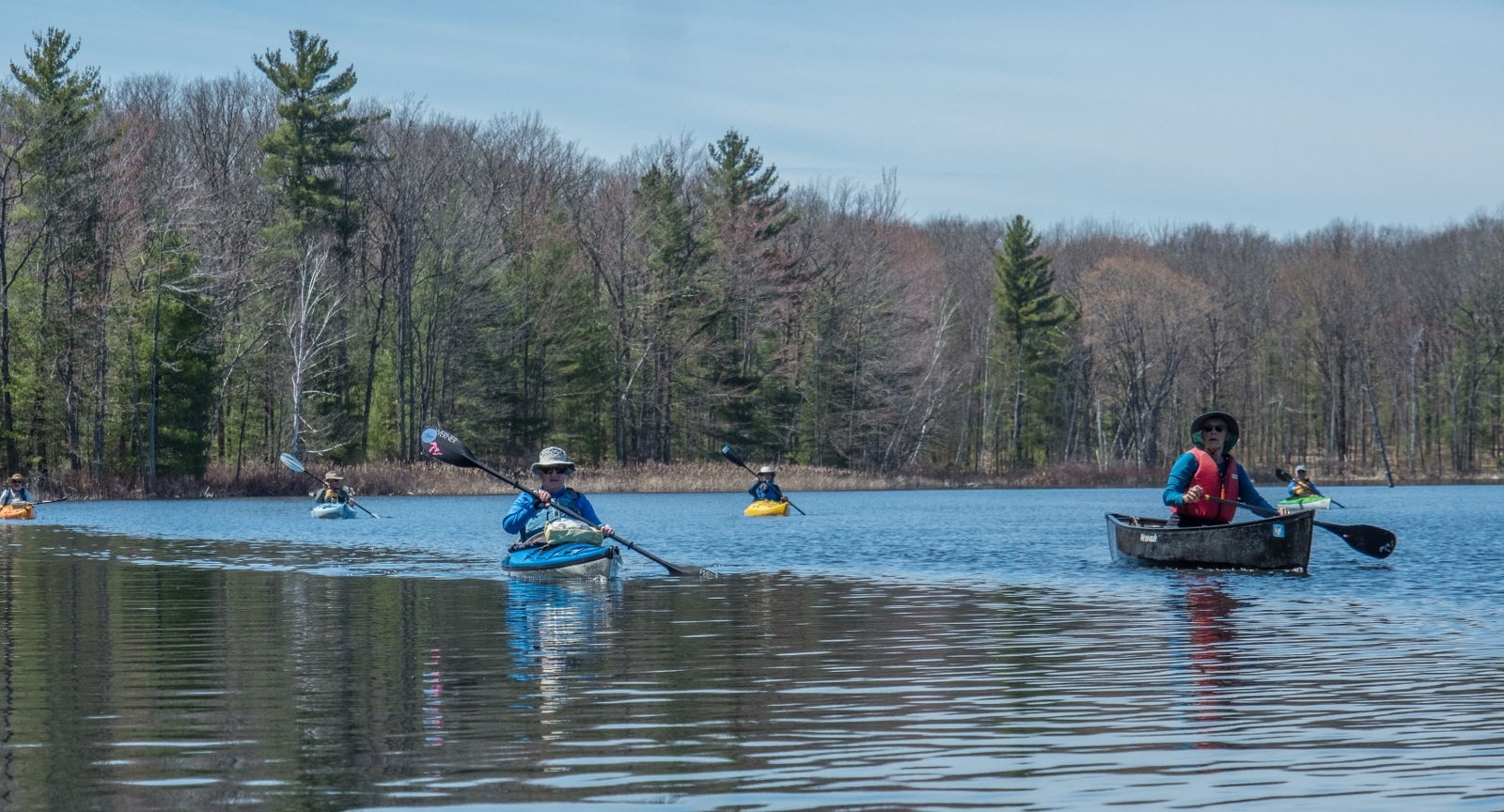 What more could we ask for? Temperatures in the mid-60s? Bright sunshine after 2 days of heavy rain? FINALLY seeing friends outdoors in the midst of the coronavirus pandemic? For me that was the best part of this afternoon's paddle, plus the bald eagle and the opportunity to paddle the far reaches of Lake Dubonnet without the usual summer foliage to paddle through.