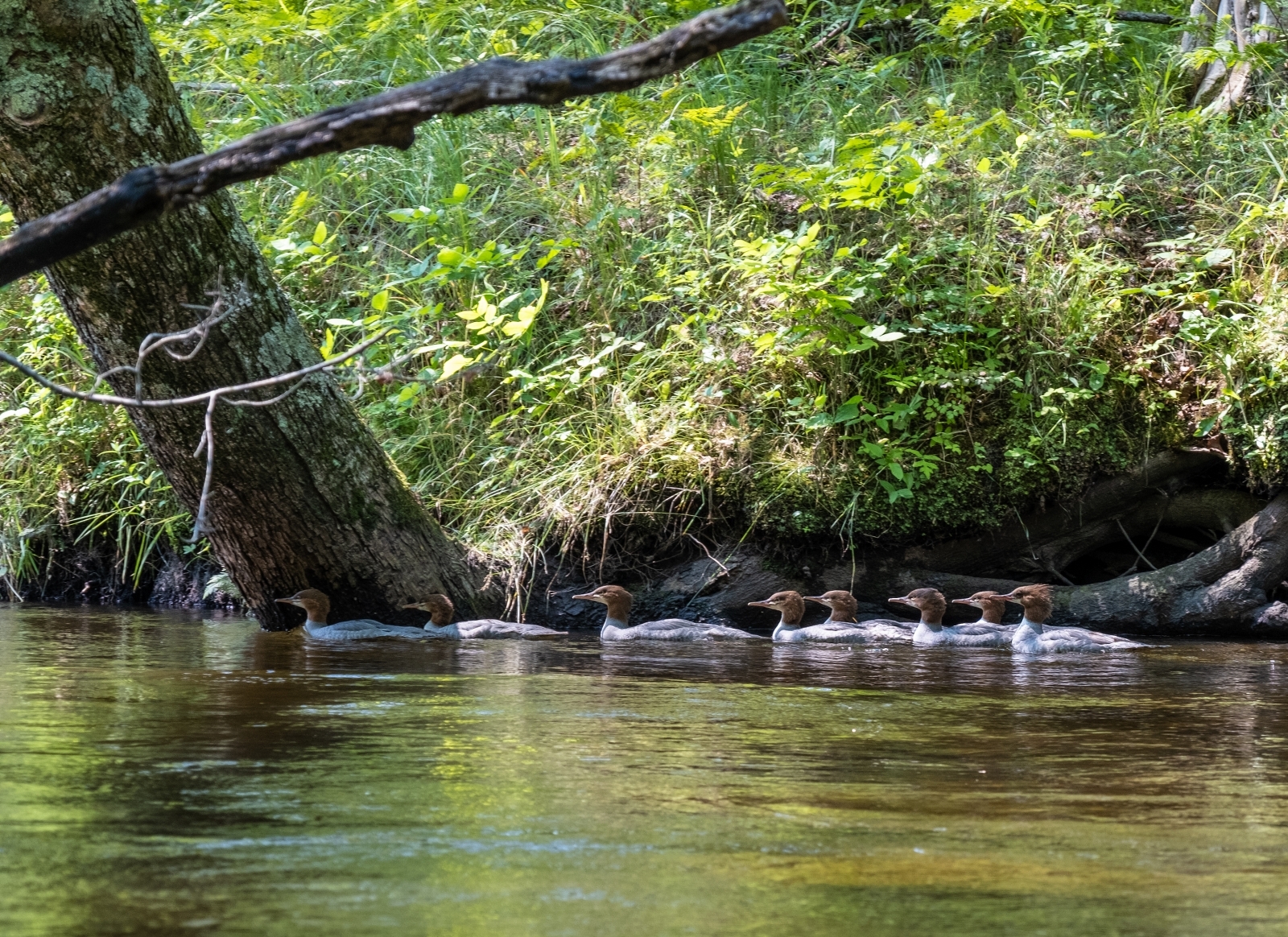 We were spotted early in our trip by a majestic adult Bald Eagle perched with wings outstretched high in a White Pine over the river who was undaunted by our presence below. An awesome up close sight to behold! Throughout the trip, several Great Blue Herons, numerous Belted Kingfishers, and a young family of Common Mergansers joined us. The flora was in its prime with several gorgeous flowers blooming along the riverbanks.